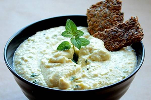 Staviti kokosovo meso, vodu i indijski orah u blender i blendati dok se ne dobije smesa kremaste konzistencije. Dodati sok od limuna, rendanu koru limuna, nutritivni kvasac, so i biber. Blendati dok smesa ne postane konzistentna. Dodajte iseckanu nanu i pulsirajte blender nekoliko puta. Držati u frižideru do serviranja.